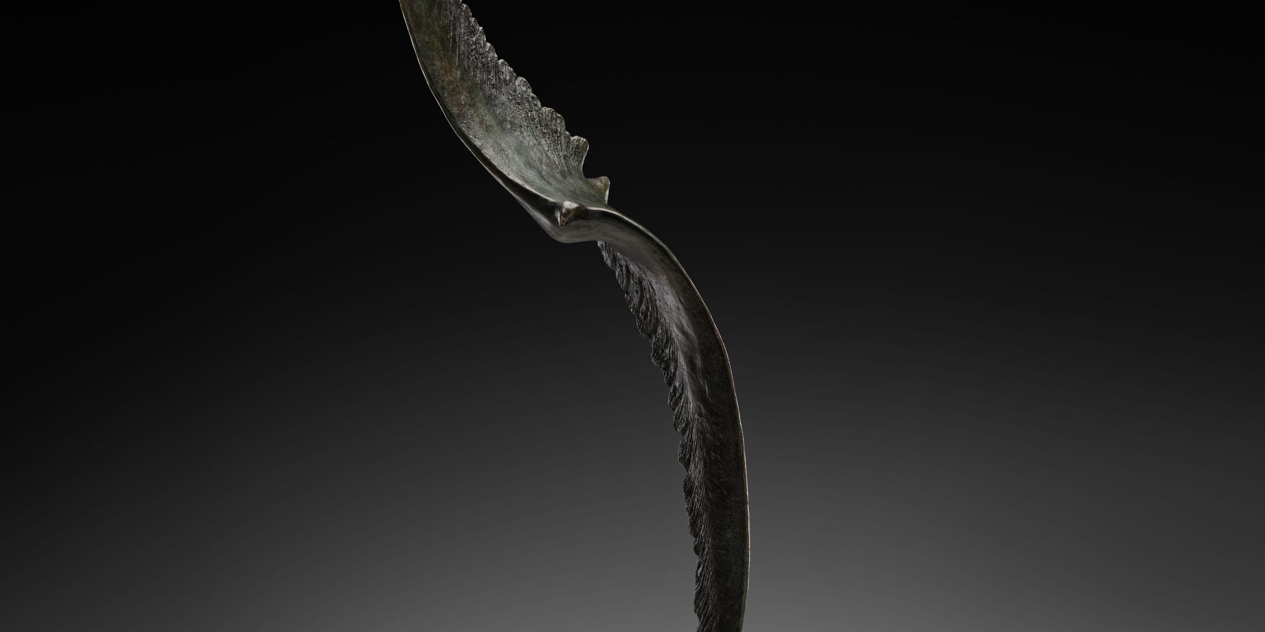 Aella : dernière sculpture en bronze du sculpteur belge Isabelle Thiltgès qui livre ici une nouvelle interprétation de la thématique de l’oiseau posé sur son aile en équilibre sur son rocher.