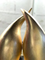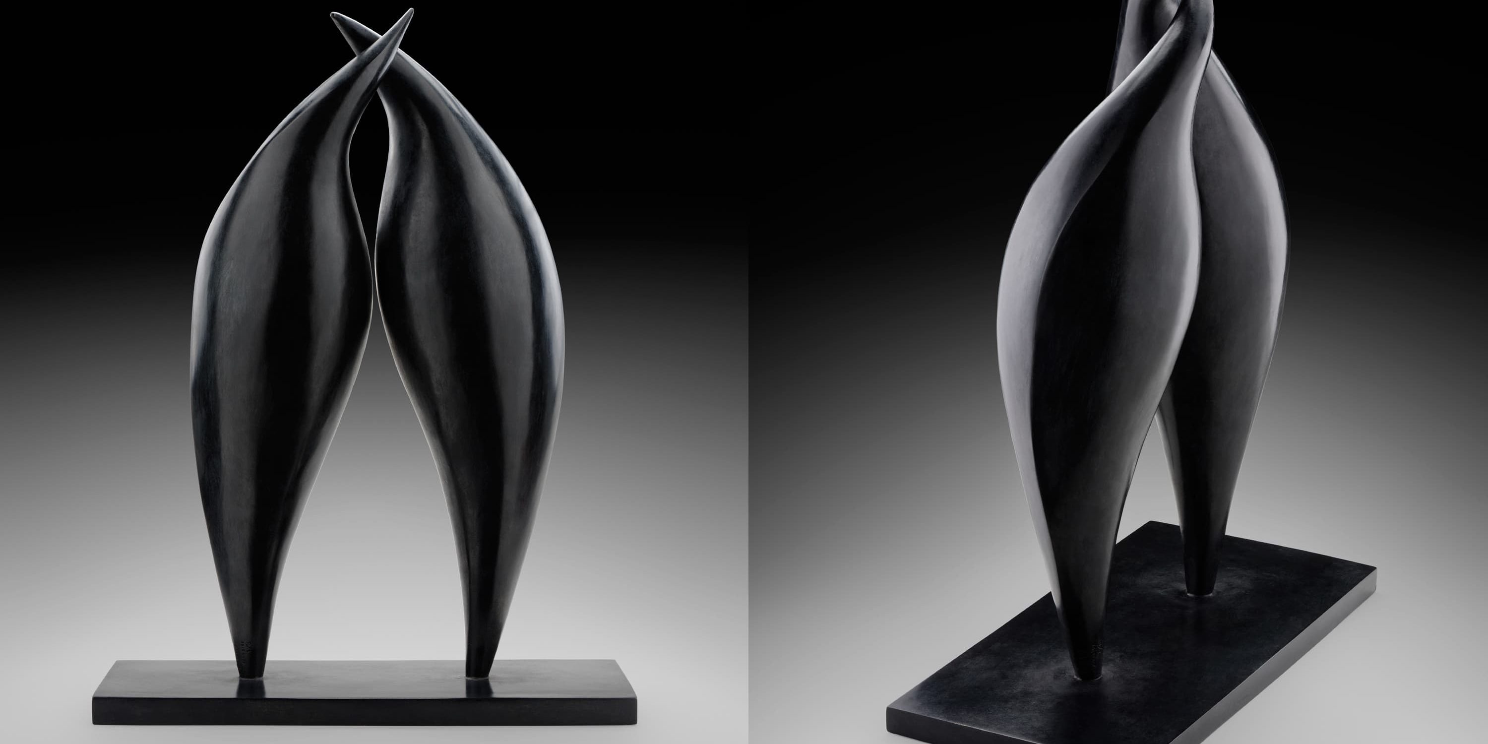 Effleurement, ou l’imminence de l’étreinte de deux oiseaux parés de l’élégance des formes pures et d’un lisse parfaitement maîtrisé. Moment saisi en lignes sobres qui sculptent les espaces et suggèrent à elles seules l’intense émotion du contact à venir. Un mélange presque alchimique de tendresse et de sensualité, de ceux qui peuvent suspendre le temps…