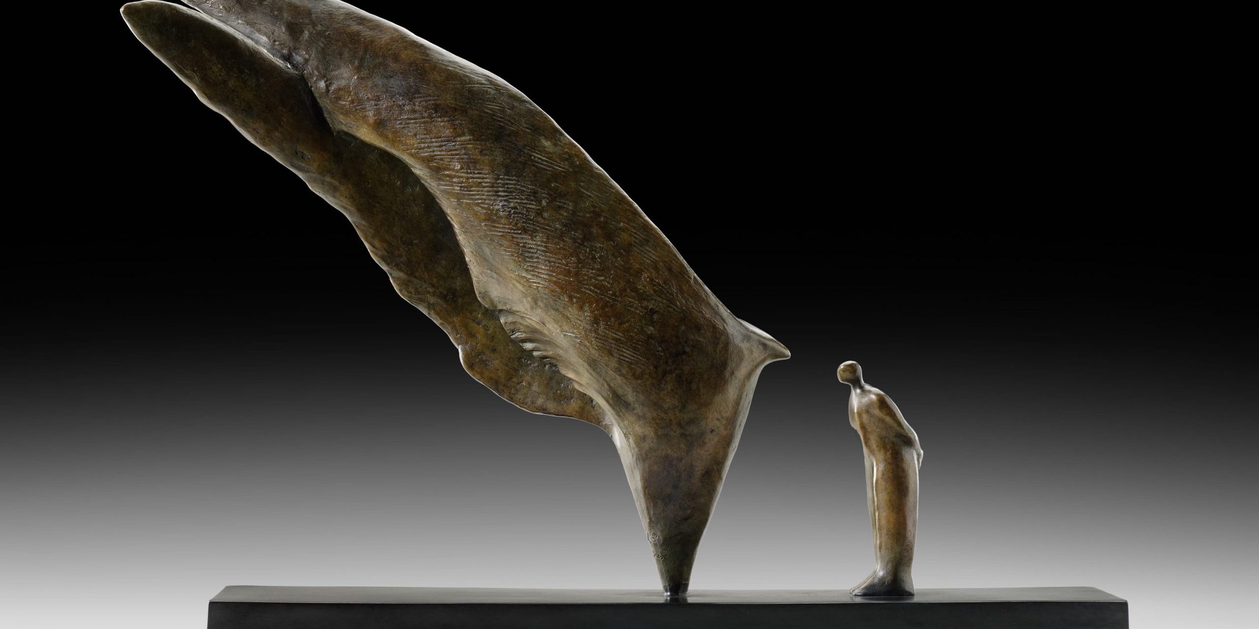 La Conversation Silencieuse, rencontre entre un homme et le grand oiseau posé, ailes croisées, le temps d’un entretien intime et apaisé.