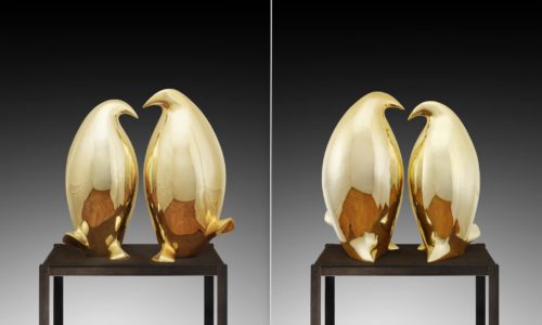 Les Pingouins dorés XL (Golden Penguins XL), ou la vision très personnelle de ces oiseaux qu’Isabelle aime pour leur capacité à incarner les valeurs essentielles de fidélité et de profondeur. Une leçon pour les humains qu’Isabelle Thiltgès transmet en toute simplicité, à travers les formes pures typiques de sont travail et toujours avec la retenue qu’on lui connaît.